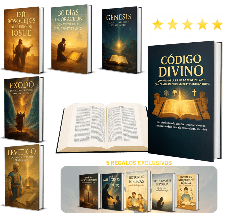 Al adquirir CÓDIGO DIVINO hoy, recibirás totalmente GRATIS estos 5 regalos exclusivos que complementarán tu estudio y crecimiento espiritual: